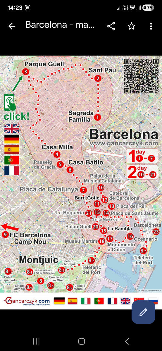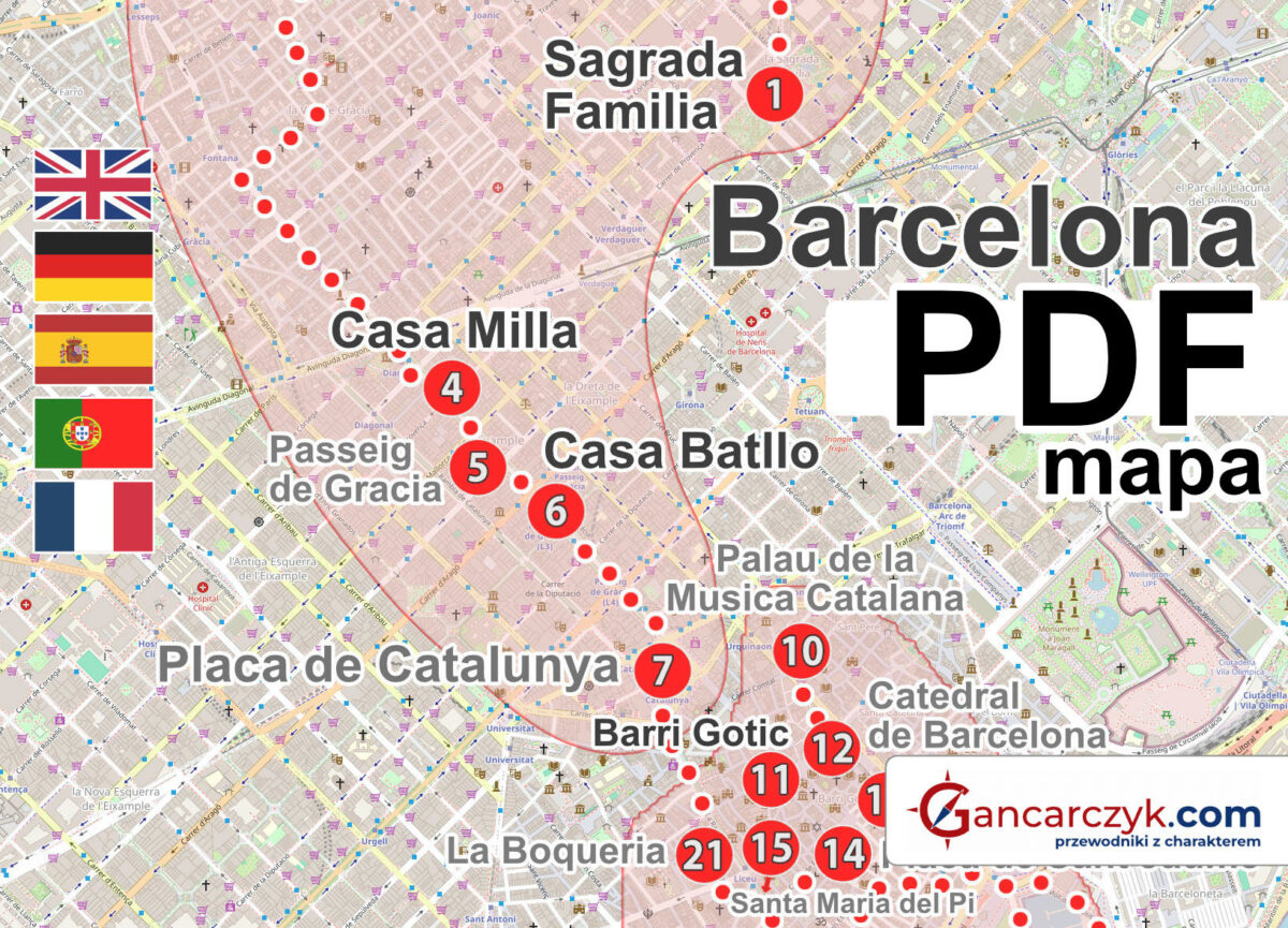 Barcelona: interaktywna MAPA PDF, trasy zwiedzania 1-5 dni [2026]