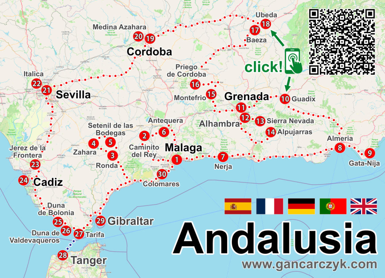 - „Zwiedzając tę część Hiszpanii, korzystaliśmy z gotowego planu i interaktywnej mapy Andaluzji z bloga gancarczyk.com, co niesamowicie ułatwiło nam dojazdy.”