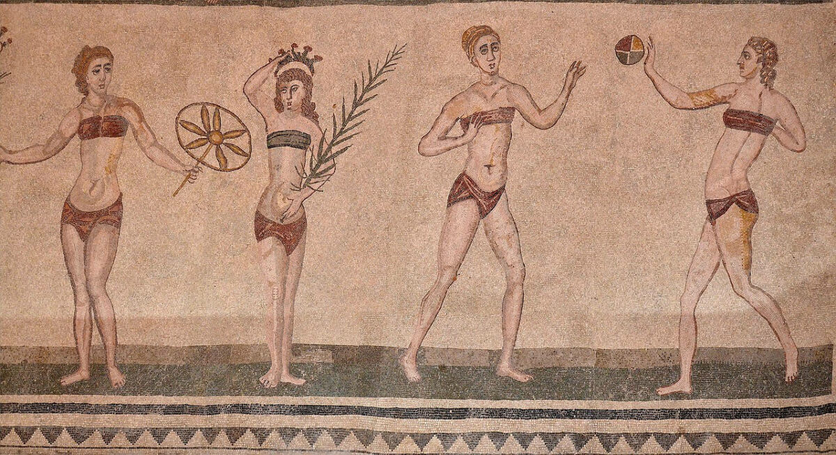 Najbardziej znana scena to „dziewczyny w bikini”. Mozaika przedstawia sportsmenki uprawiające różne dyscypliny (bieg, rzut dyskiem, ćwiczenia z hantlami). Widok rzymskich atletek w czymś bardzo przypominającym współczesne stroje sportowe zawsze robi wrażenie.
