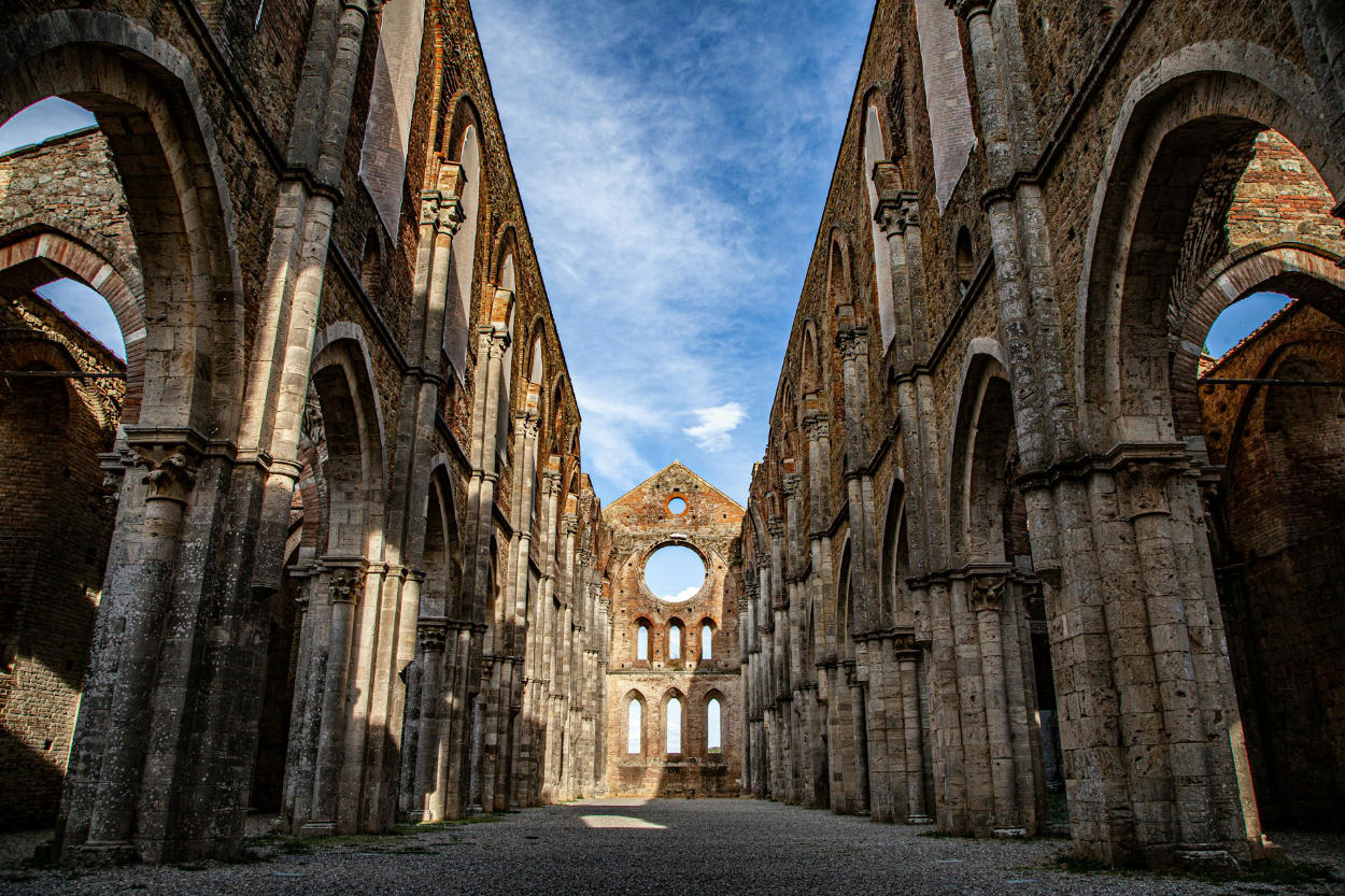 Opactwo Sant’Antimo. Będąc w Montalcino, koniecznie podjedź 10 km dalej do Abbazia di Sant’Antimo. To jedno z najpiękniejszych romańskich opactw we Włoszech. Jeśli będziesz miał szczęście, usłyszysz tam mnichów śpiewających chorały gregoriańskie (sprawdź godziny nabożeństw).